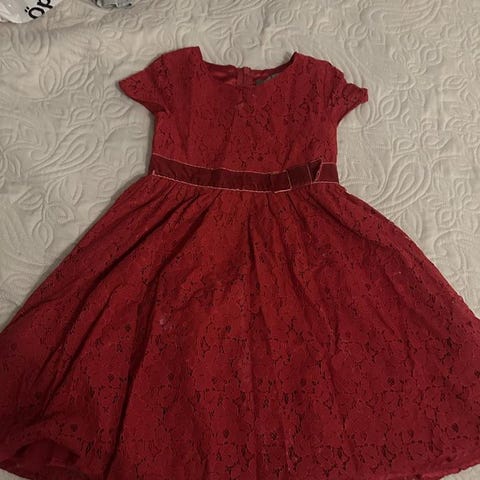 Finstickad klänning med lång ärm och polokrage. Klänningen har ett randigt mönster i färgerna vit, rosa, brun och svart. Ny oanvänd med taggs, stl 122.
