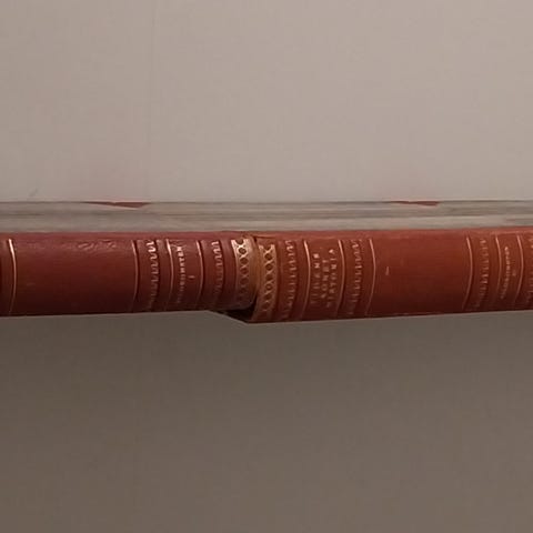 Hylla med vacker kant, troligtvis har det varit en kornisch med gardinstång men det fanns inte med en stång när jag köpte den i en antikbutik.