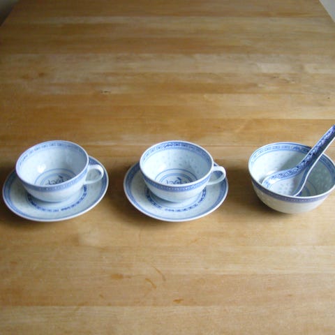 Säljer mitt kinesiskt risporslin, även känt som "rice grain porcelain". Med dekorativa små risformade märken, dessa ger en genomskinlig effekt som släpper igenom ljus. På undersidan av porslinet står det "中国景德镇" (Zhōngguó Jǐngdézhèn) och "MADE IN CHINA". Detta porslin är tillverkat i Jingdezhen, Jiangxi i Kina, som är känd som "porslinets huvudstad" på grund av sin långa historia av porslinstillverkning.