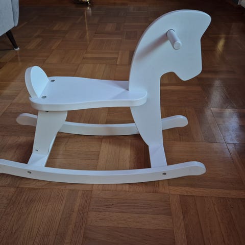 Fin retro-leksak. Designad gunghäst. Elefant i trä. Lackerad furu. Stabil konstruktion. Sitthöjd 40cm.