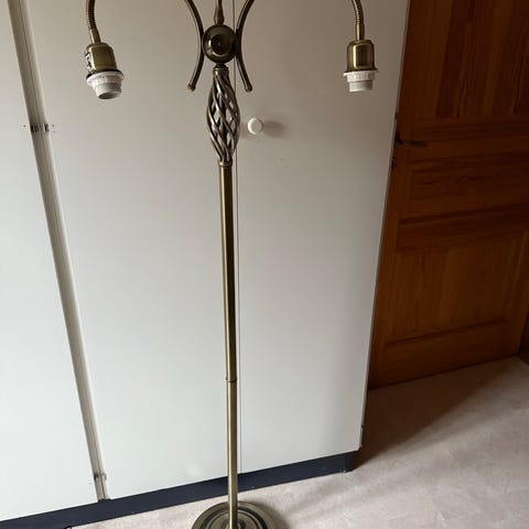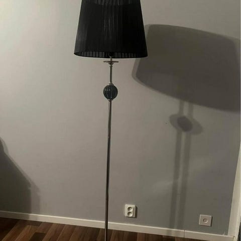 Golvlampa med bottenplatta och ställning i stål klädd med rispapper
