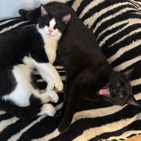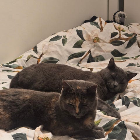 Båda katterna gillar att busa och har varit innekatter hela sina liv. Extremt trevliga katter överlag. Dom äter båda Friskis just nu.