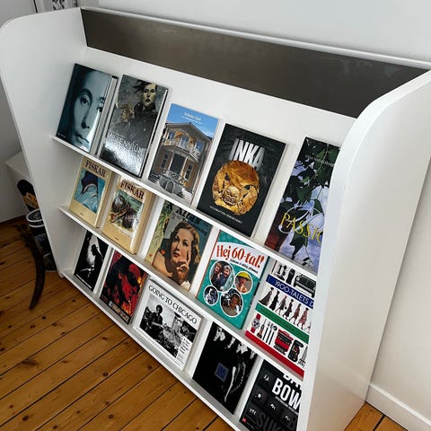 Nordisk Familjebok, halvfransk. Snygg inredning i bokhylla!