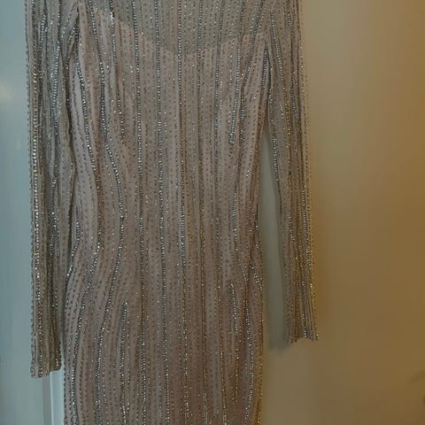 En otroligt vacker och glittrande klänning i puderrosa nyans från det brittiska märket Lace & Beads. Klänningen är handdekorerad med paljetter och pärlor som fångar ljuset på ett magiskt sätt – perfekt för bröllop, bal, fest eller andra speciella tillfällen.