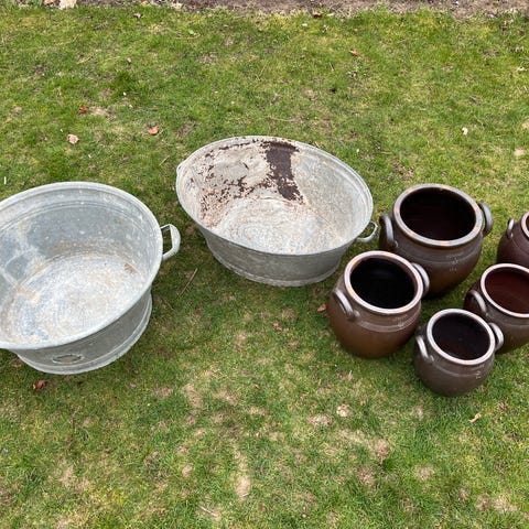 Zinkbalja 27 cm hög, 70x45 cm i bredd, 100 kr (läcker en aning)