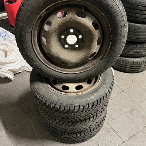 Hej. Begagnat vinterdäck till Toyota. 4 st. Med kepslar. Dubbade, riktningsrotation, bra väghållning. Älta.