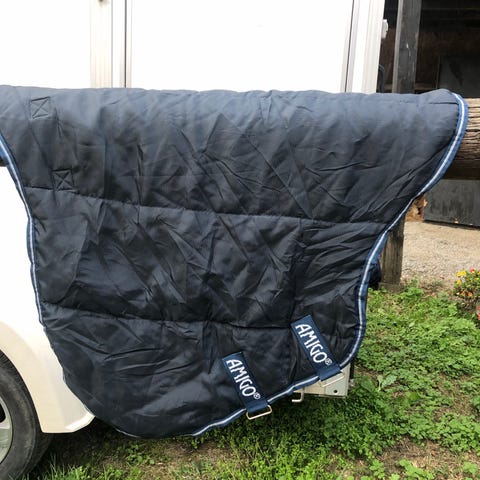 Marinblått med blå/vit kant. Använt fåtal gånger - som nytt! Stl 5’9 vilket motsvarar 125 cm för täcke.