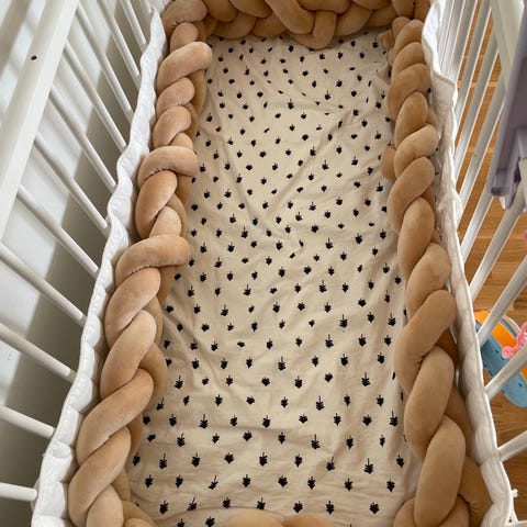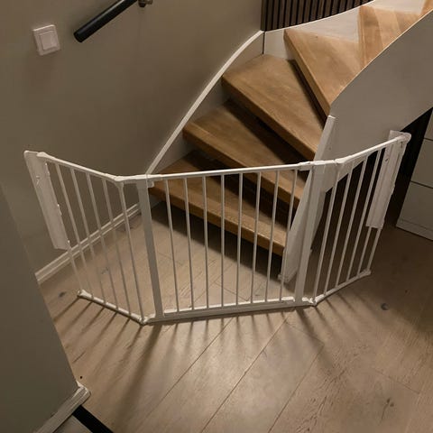 Skyddsstaket för barn. Monteras stående. Sitter i kasset när den inte används. Fantastiskt praktisk och säker. Märke Kiddy Guard.