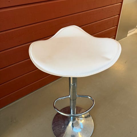 Säljer 4 st vita barstolar i formpressat och lackat trä med stilren design och bekväm sitthöjd som justeras med hydraulik.