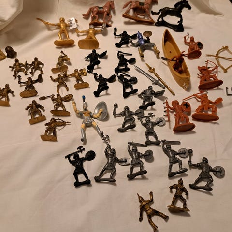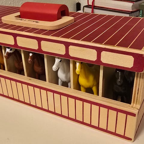 Litet set med 2 hästar, en prinsessa, staket och en väska som allt får plats i.