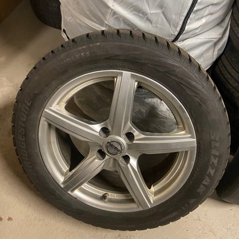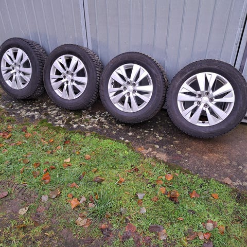Odubbade vinterdäck Falken Eurowinter HS02på svarta lackerade fälgar. Nu tvättade! Falken 215/60 R17 100v, bra mönster.