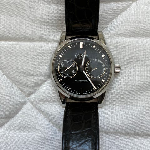 Urtavla: Svart med världstidskomplikation (dubbel tidszon, dag/natt, datum)