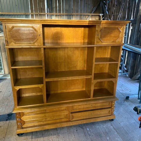Ribban som hyllplanet är monterad mot är i faner och lite kantstött (se bilder) Ribbans tjocklek är 7mm