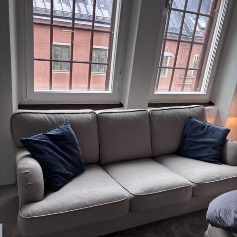 2 soffor i fint skick. 4 kuddar i samma färg som sofforna medföljer(ej de på bilderna)