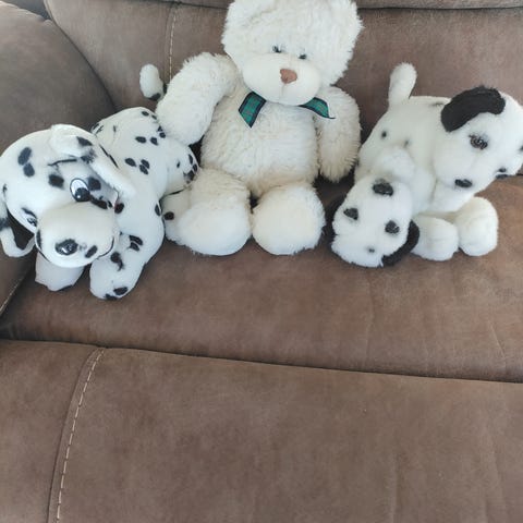 Söt vit björn med rosa detaljer. Den har stora ögon och en rosa paljettväst. Perfekt som gosedjur eller dekoration. 25 cm hög.