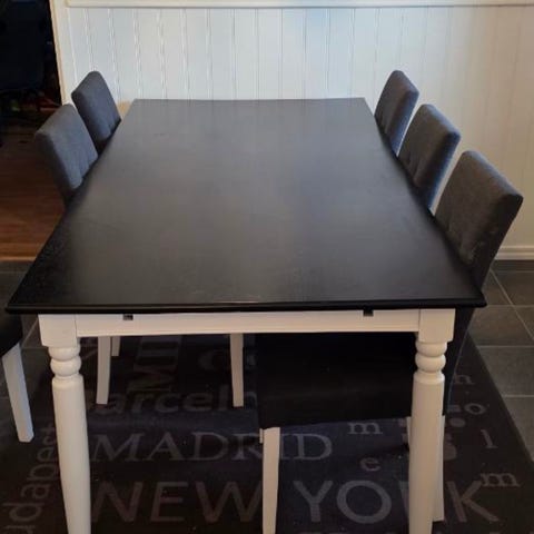 Matsals- köksbord +iläggsskiva + 8 st stolar