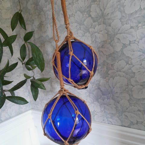 4 blå och 2 ofärgade ljuslyktor med kedja. Fina att hänga i fönstret t.ex. Dekorativa.