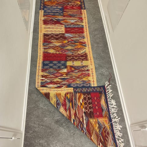 Säljer en ny och oanvänd och härlig matta med flätade fransar.