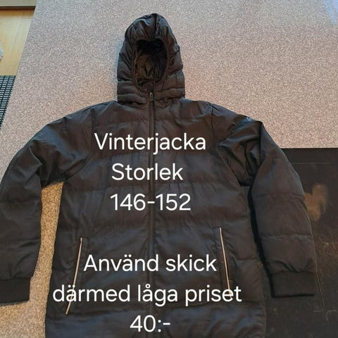 Svart varmfodrad vinterjacka med avtagbar huva ( även pälsen är avtagbar) från McKinley storlek 158. Använd men har mycket kvar att ge. Rök- och djurfritt hem.