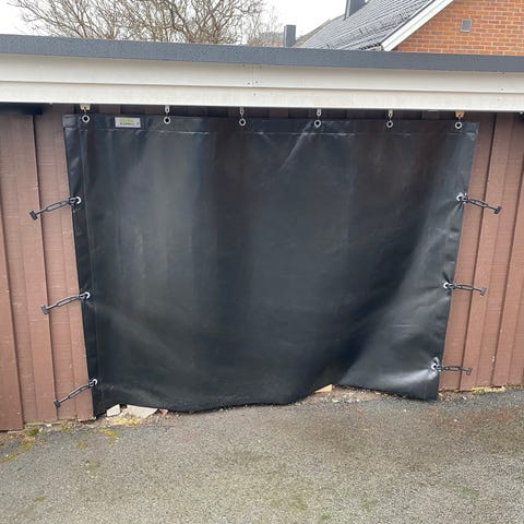 Presenning av vävförstärkt polyeten. Fållad och försedd med aluminiumöljetter på varje meter. Syra-, alkali- och saltresistent. Lämplig för skydd av fordon, maskiner, virke, mark mm.