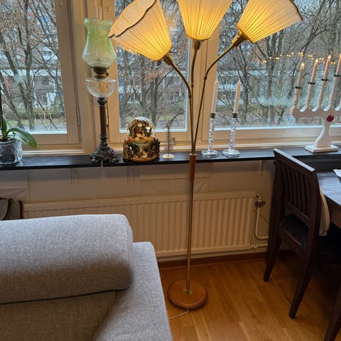 Mått; 165 cm höjd, foten är 30 cm, skärmen ca 58 cm som bredast.