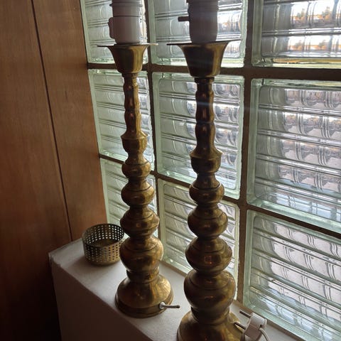 Liverpool, maffiga, hängande lampor i mässing. 1,2 m kedja/sladd för upphängning. Diameter:50 cm Ljuskälla: E27. (Har varit parkopplade så nu endast en kontakt). Nypris; 3999kr/st. Nu 1700kr/st eller 3000kr för båda. Finns i Enhagen, Västerås. Swish på plats som betalning.