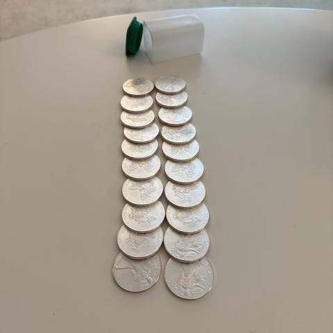 * PCGS är världens absolut ledande hemsida för värdering av amerikanska mynt sedan USA skapades. Man kan också titta på "Heritage Auctions" hemsida för att se liknande mynt som sålts i år för 8500 till 13 000 kr/st. Heritage Auctions är världens ledande auktionsfirma då det gäller sällsynta mynt