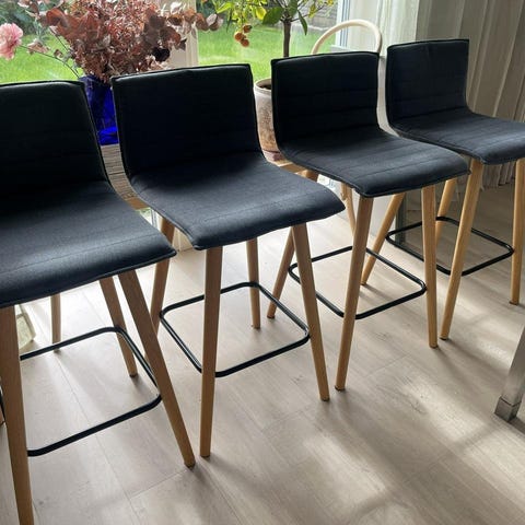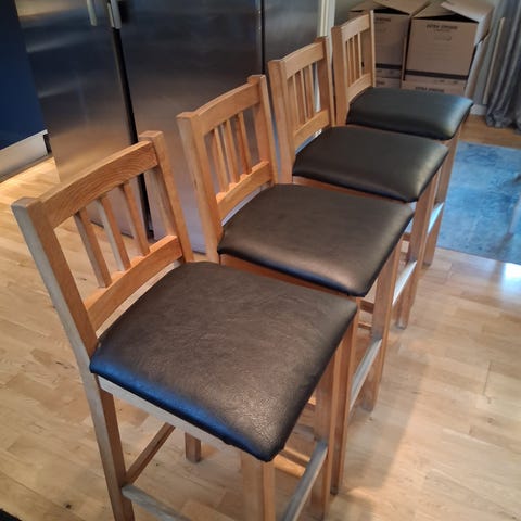 4 st barstolar ek med brunn skinnsits.