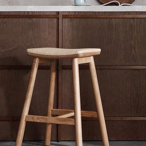 Barstol ek med skinn sits