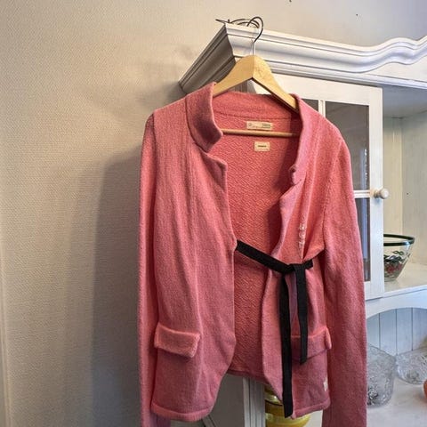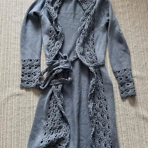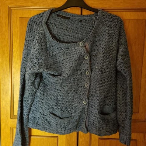 Knälång kofta från Northland. Beige och marinblå i 50% viscose och 50% acryl