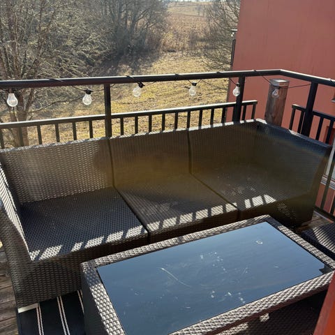 Mycket fint skick. Tre av stolarna monterades ihop i somras. Säljes med dynor. Finns nära Högstorp skola.