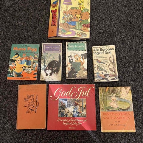 Barnböcker,Mumin, Astrid Lindgr,Pettsson-Findus,troll,Babar