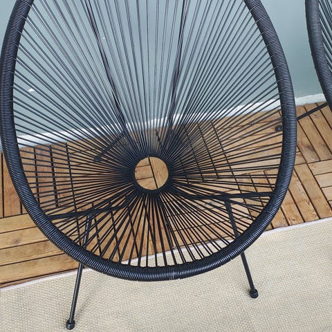 Två stycken utomhusfåtöljer i konstrotting, stabila med bra sittkomfort.