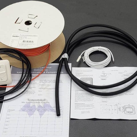 Elektriskt värmegolv golvvärme med manuell termostat (HH812-F). Vi har även större kablar i vårt sortiment, kolla på www.kakelplattan.se