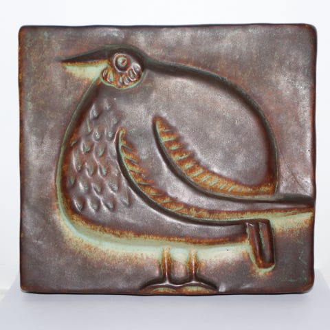 Ljuvlig stengods väggrelief föreställande en påfågel. Litet obetydligt nagg på ovansidan men knappt synligt (se sista bilden)