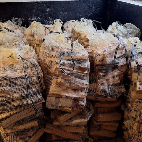 Torr björkved säljes i 40 literssäck.