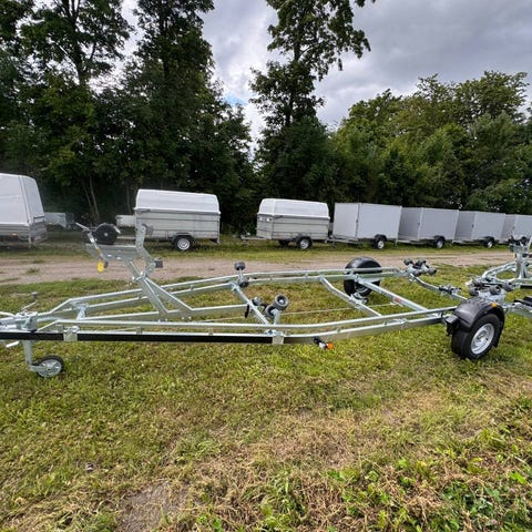 Utförsäljning! På Sista ex av -2025, års modell! Med Självjusterande Vaggor 2st, NY! 3-Års Garanti, Helsvetsad och Varmgalvad, Bromsad, X Line, Vattentäta Hjullager, Vikbar och Vattensäker Belysning, För båtar upp till 22Fot, Max Båtlängd 6,6m, Brenderup, 221800B SVX, Tot.vikt 1800kg, Lastvikt 1380kg, (Ord pris 73738-) Vårt REA Pris OBS! =47900:- , Gångramp 3,5m, Pris =1990:- , Alla Priser inkl. moms