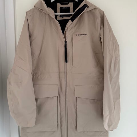 Didriksons Storm system Dry 2 Storlek 42 Färg korall. Ofodrad. Vindtät, vattentät med huva. Ej sliten. Knappt använd. Nytvättad. Som ny. Dragsko midja, längst ner och runt huva. 2 handfickor fram. 1 innerficka med dragkedja. Hål för sladd till hörlurar ovanför innerficka.