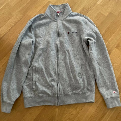 Grå och väldigt skön kofta med rejäl dragkedja och orange text. Fräsch.