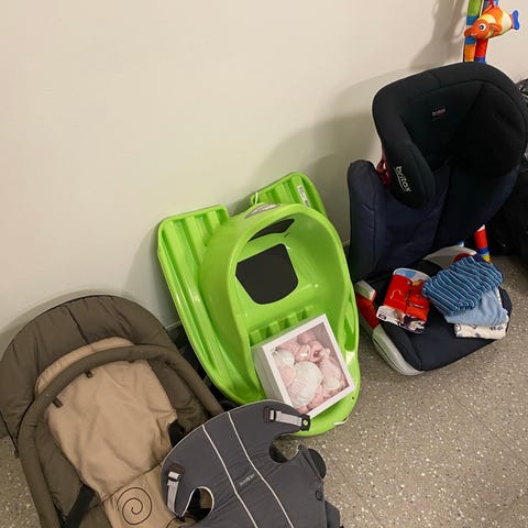 - Lära-gå-vagn, gravidkudde, sparkbil, bärsele, Candide Hud mot hud tub, 18 st bitar lekmatta, bröstpump, åkpåse för höst/vår och åkpåse för kallare vinter, babynest, skötväska, skötunderlägg, sittdyna till barnvagn, flertalet overaller i olika storlekar och för olika årstider/väder från storlek 56-80, 4st sovpåsar, bad balja med mera.