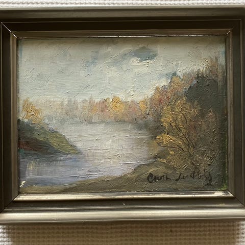 Fin tavla i olja av Simon Edqvist målad i Finspång. Mått 53 x 45 cm.