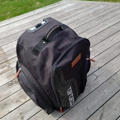 EN CCM MV bag med stadiga hjul och två rejäla handtag att dra i beroende på hur lång man är. Inga hål och i gott skick. Den rymligaste bagen som finns till Målvakter.