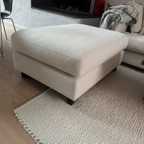 Fotpall som gungar. Nyomklädd i vinröd sammet fr Sweef. (orginatyg blå med broderade blommor under)