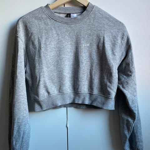 Grå croppad sweatshirt med långa ärmar. Perfekt för en avslappnad men trendig look.använd 1 gång.storlek M.