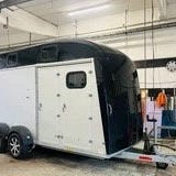 Bäckmann Portax SKA, lyxigt aluminiumsläp (golv och väggar) för två hästar med stor sadelkammare som nås både utifrån och inifrån.