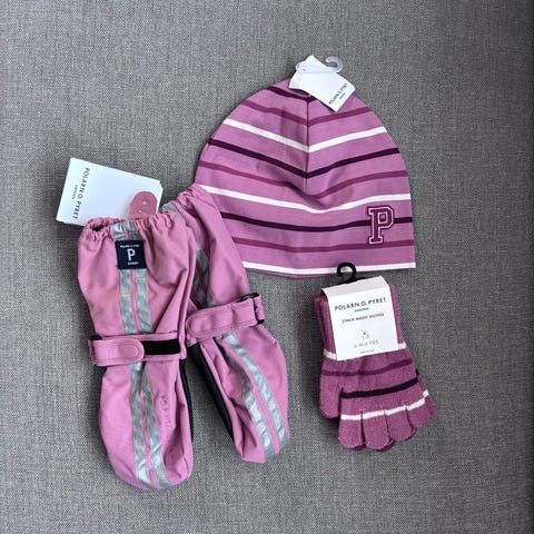 Nya Polarn och pyret 6 par vantar och mössa stl 52/54 pop