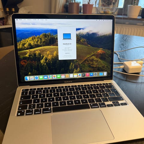 Säljer en MacBook Air M1 (2020) som köptes för studier men aldrig användes. Min kusin flyttade kort därefter utomlands där hon fick jobb och lämnade datorn hos mig, därför säljs den nu