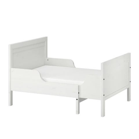 Säljer våran utdragbara barnsäng från IKEA med vit finish och ribbotten. Fint begagnat skick.