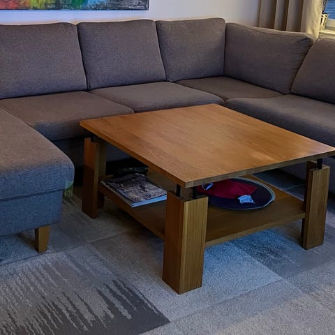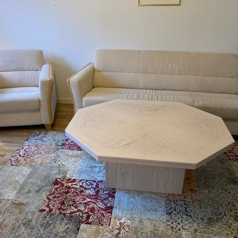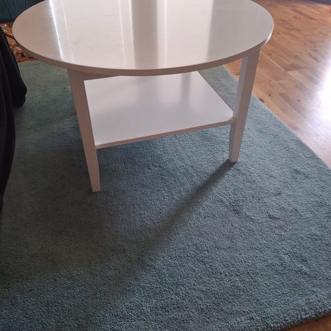 Bordet är stabilt och av bra kvalitet, men skulle må bra av en ommålning för att bli som nytt igen. Jag har varit väldigt nöjd med det, men eftersom jag gör om hemma får det nu gärna flytta vidare. Finns även matchande tv-bänk och vitrinskåp i samma färg.