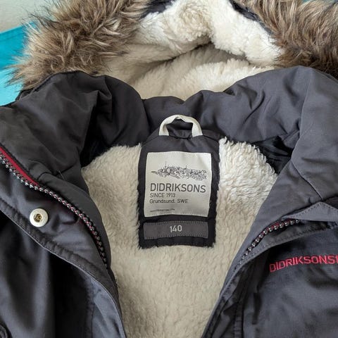 Vattentät jacka Didriksons Storm System strl 140 svart Vattentät vindtät, avtagbar luva med fuskpäls Varm, dragsko finns, djupa bra fickor. Allt i superskick! vinterkläder vinterjacka